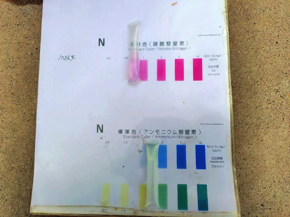 消毒槽から放流される処理水を採水して放流水質の検査。
