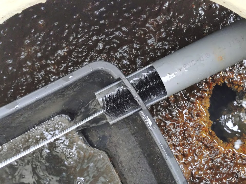 浄化槽内の返送管やエアーリフトポンプ等の配管類をブラシ洗浄。