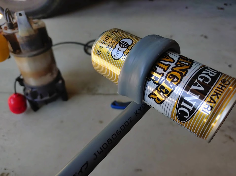 ウチで使ってるフロートキャッチャーは、製作費用500円くらい。製作時間10分。作るのに必要な道具はヒートガン・パイプソー・接着剤・タオル・缶ジュースのみ。