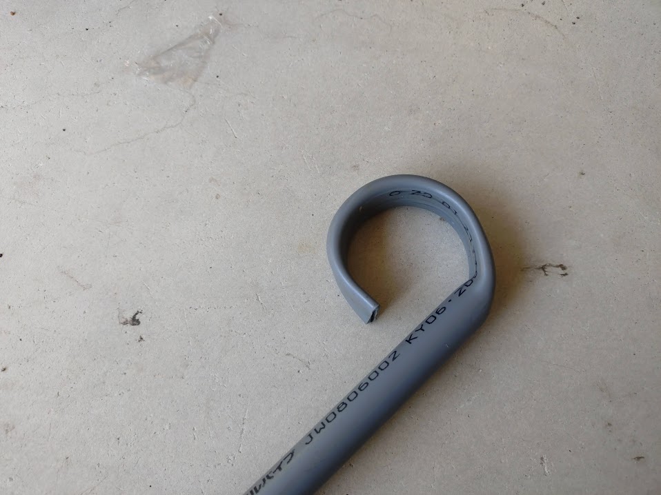 この先っちょを丸めた塩ビ管。弊社で作成して以前から使用しています。これが何かというと・・・