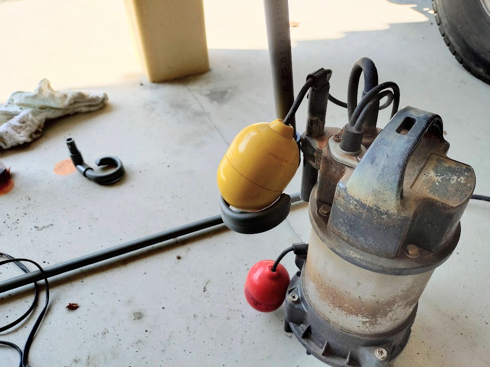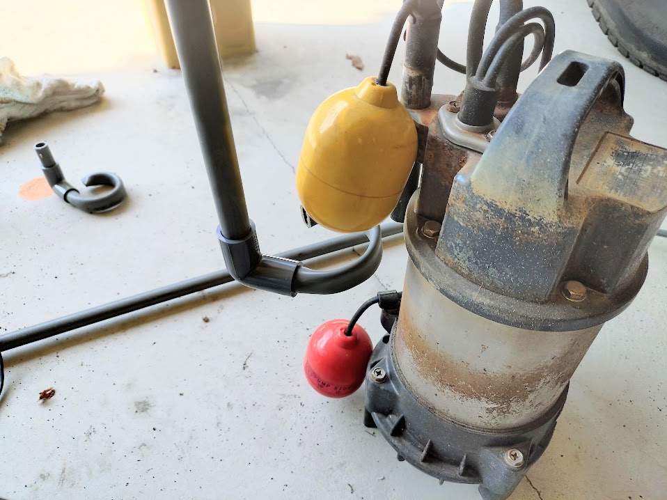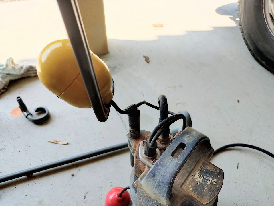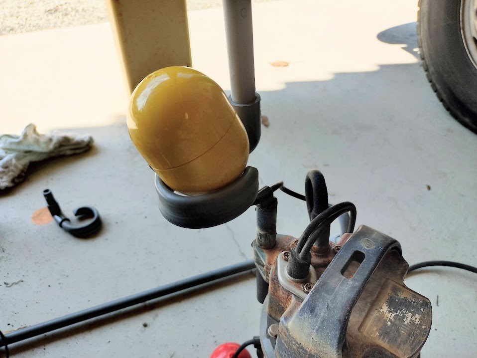 放流ポンプ槽に据え付けられている水中ポンプのフロートの動作確認をするための小道具です。