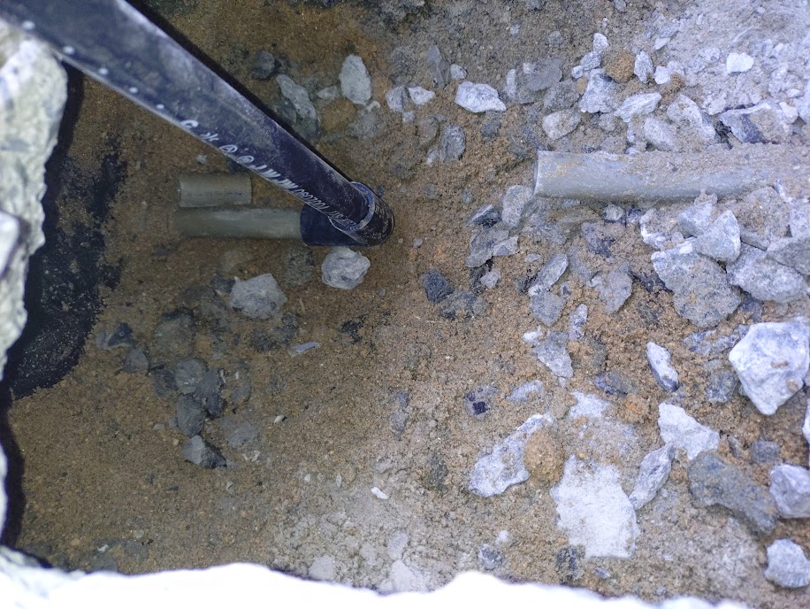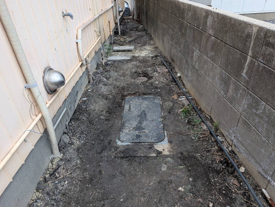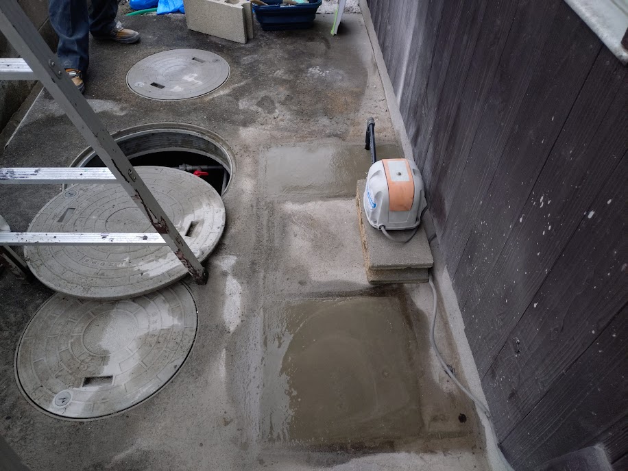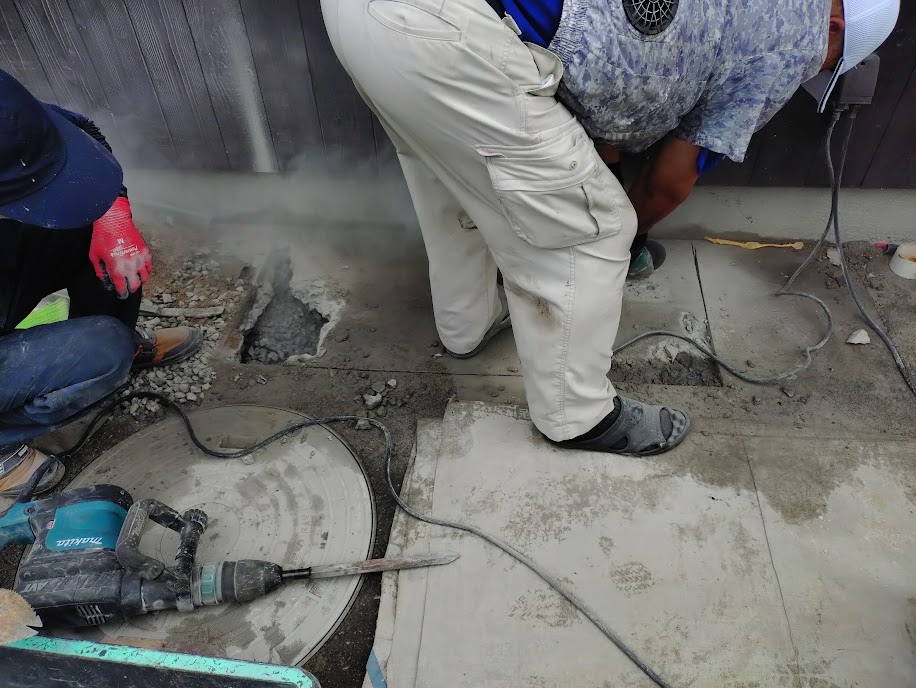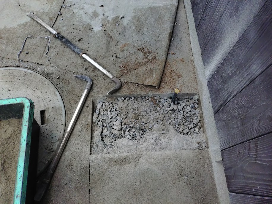 だろうなと思って準備万端。コンクリートを切って斫って配管出して・・・