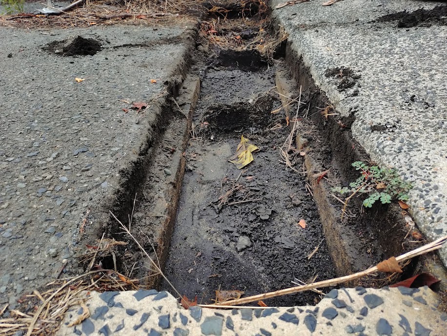 とりあえず放流先の確認をしたら、放流先の側溝が土砂でミッチミチ😨・・・ウソやろ。・・・いや。ウソやない。だって目の前に見えるものが現実のはずだから。