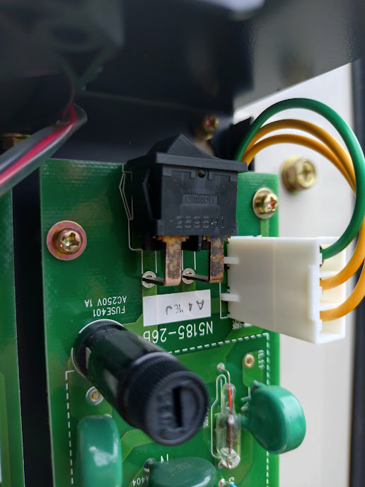 在庫のヒューズと交換したら復旧した。原因は何だ❓雷落ちて誘導電流❓(停電してないのに❓)監視装置内の経年劣化❓(ヒューズ交換したら復旧したのに❓)もしかして湿気❓(こんなこと初めてやけど今年のこの例年にない高温多湿具合。ありえなくもない❓)